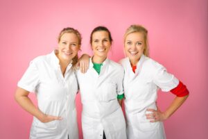 foto: Britt (midden) en Eva (derde van rechts) met hun team.