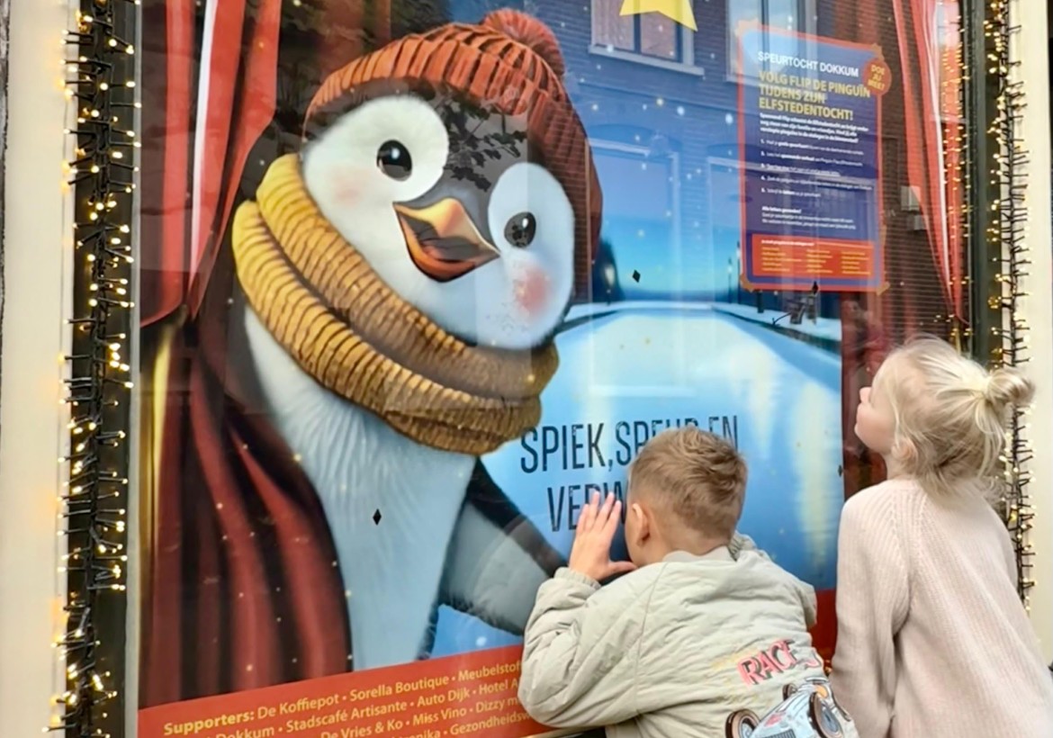 DOKKUM – Terwijl heel Nederland zich afvraagt of het ooit nog eens écht gaat vriezen, is het in Dokkum al zover: de Elfstedentocht is begonnen! Niet op natuurijs, maar dwars door de binnenstad en met een vrolijke pinguïn op schaatsen in de hoofdrol. Vanaf vandaag kunnen kinderen en hun ouders meedoen aan de nieuwe wintereditie van de Speurtocht Dokkum: Pinguïn Flips Elfstedentocht.