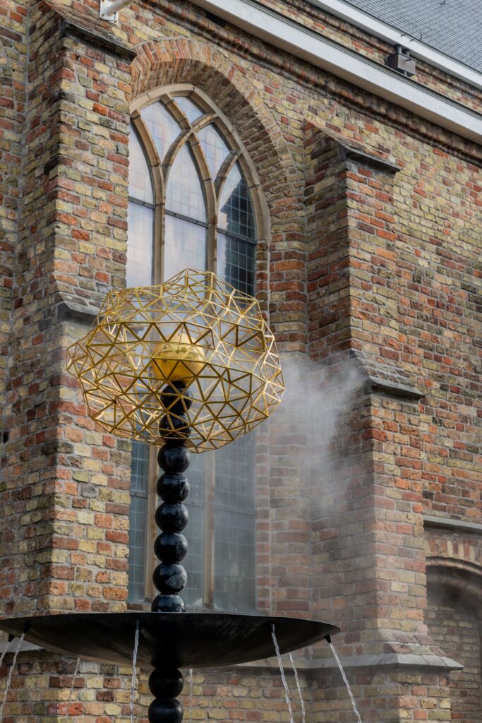 De mistfontein ligt naast de kerk in het centrum van de stad en vormt een rustpunt tussen de bloemen, het gras en de oude muren van Franeker. “It is hjir fuort akseptearre,” zegt Lijnie. “By ús wie gjin gedoe, lykas yn guon oare stêden. Minsken fine it moai sa.”