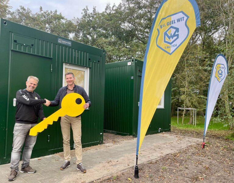 Tijdelijke kleedkamers voor V.V. Geel Wit in gebruik genomen