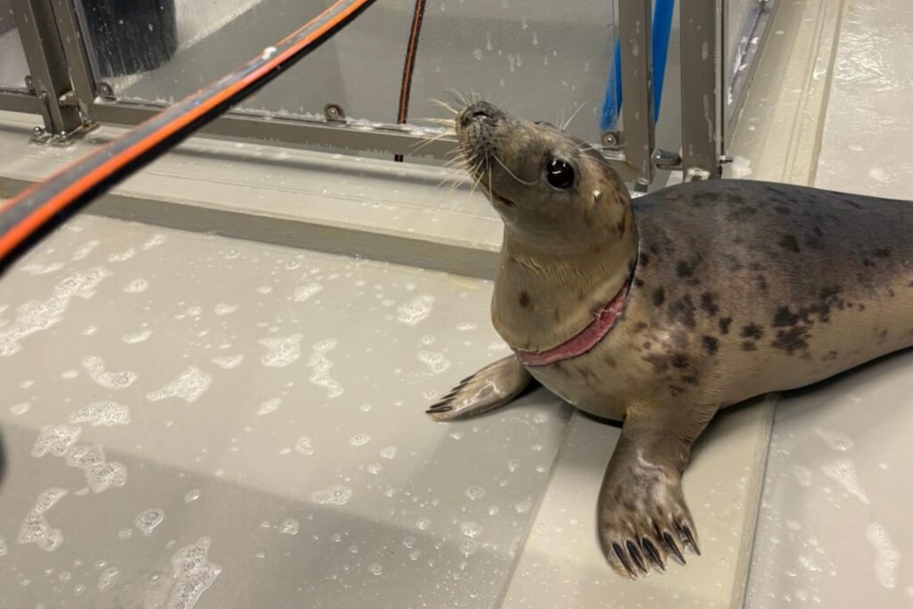 LAUWERSOOG – In het WEC (Werelderfgoedcentrum Waddenzee) in Lauwersoog, het nieuwe thuis van Zeehondencentrum Pieterburen, is afgelopen vrijdag een jonge grijze zeehond opgenomen die zwaar verstrikt werd aangetroffen op het strand van Terschelling. Het dier, inmiddels Django (Unchained) genoemd, zat vast in een groen visnet en had diepe snijwonden in haar nek.