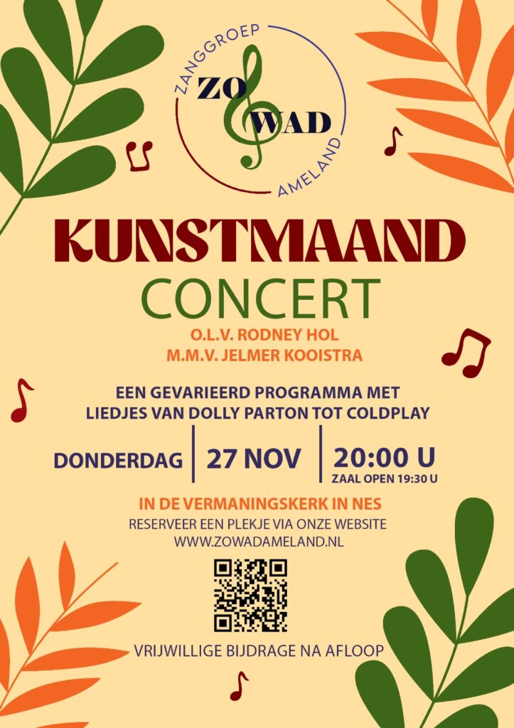 NES – Zanggroep Zo Wad laat van zich horen tijdens de Kunstmaand Ameland. Op donderdag 27 november geven ze een Kunstmaandconcert in de Vermaningskerk in Nes.